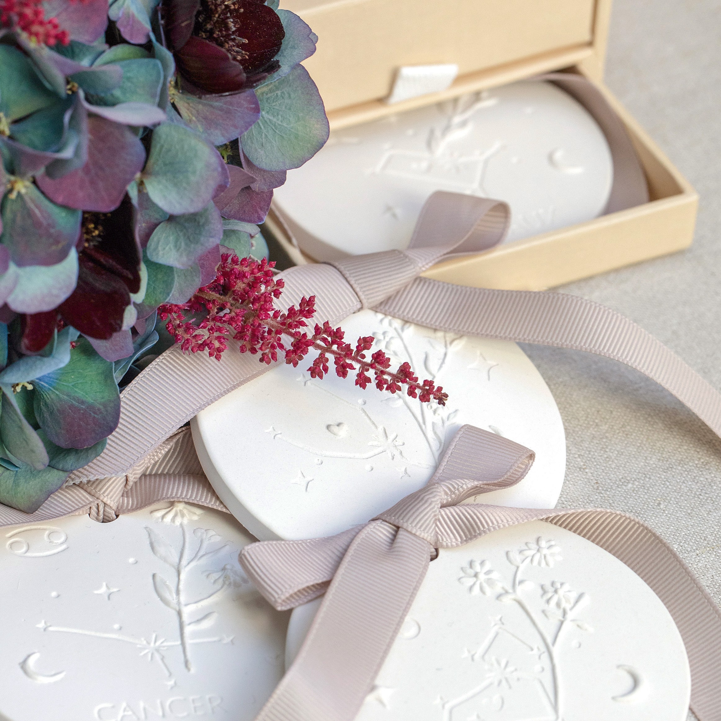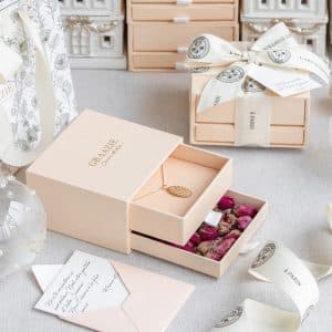 Un cadeau personnalisé habillé de vos mots doux et de délicates attentions; fleurs séchées, décors parfumés, bougies et papeterie.