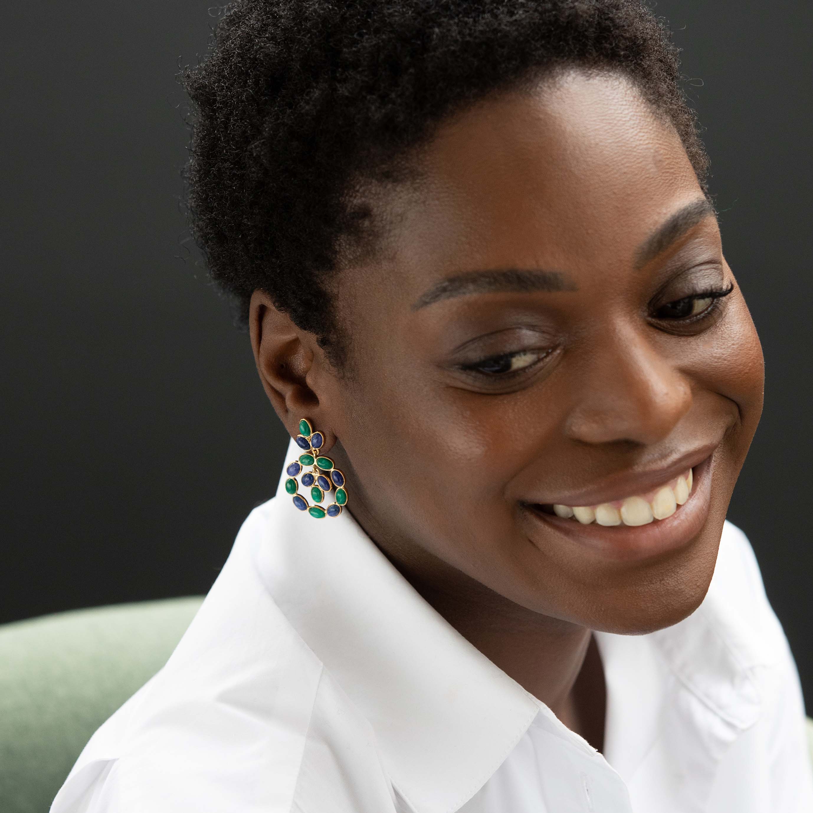 Boucles d'oreilles serties clos d'émeraudes et de saphirs brutes.