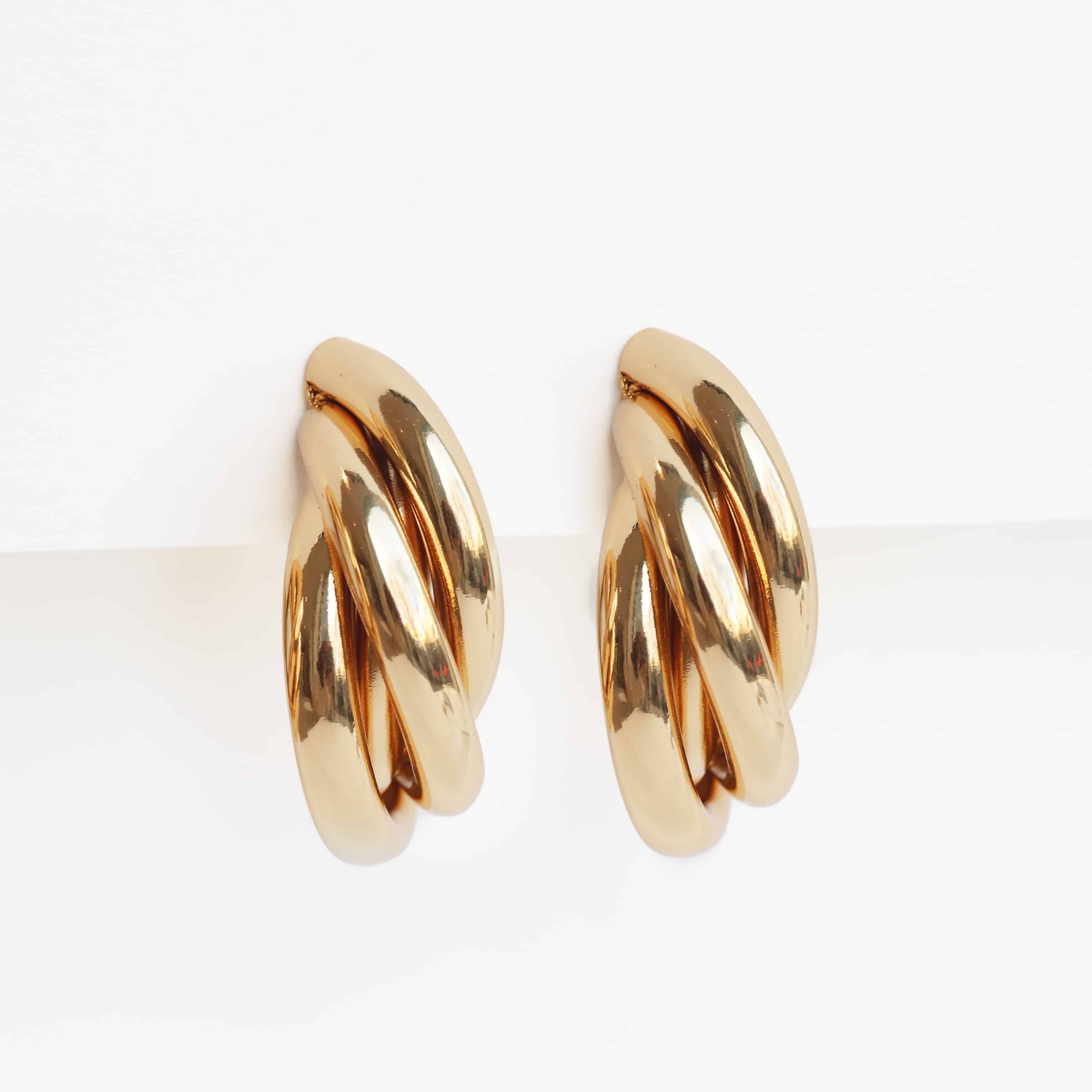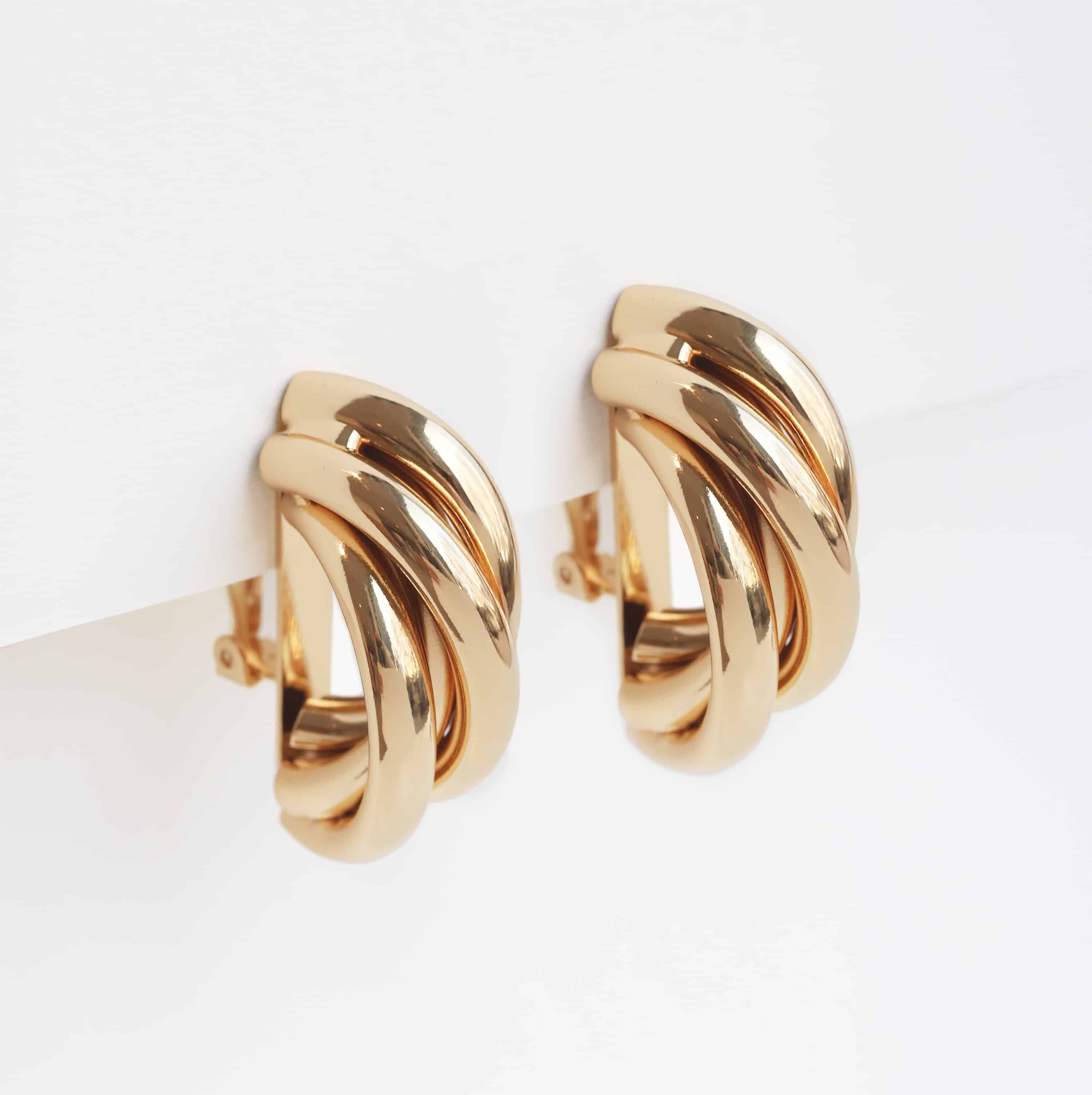 Boucles d'oreilles triple anneaux à clips dorés à l'or fin.