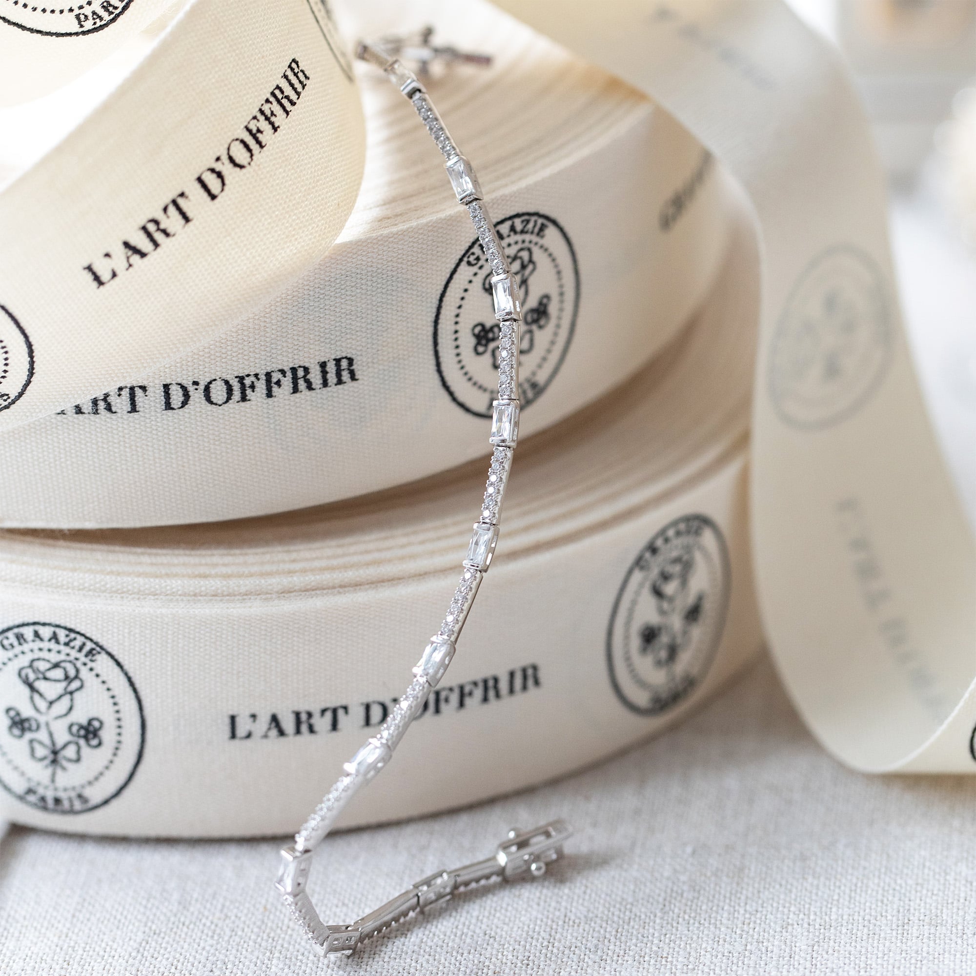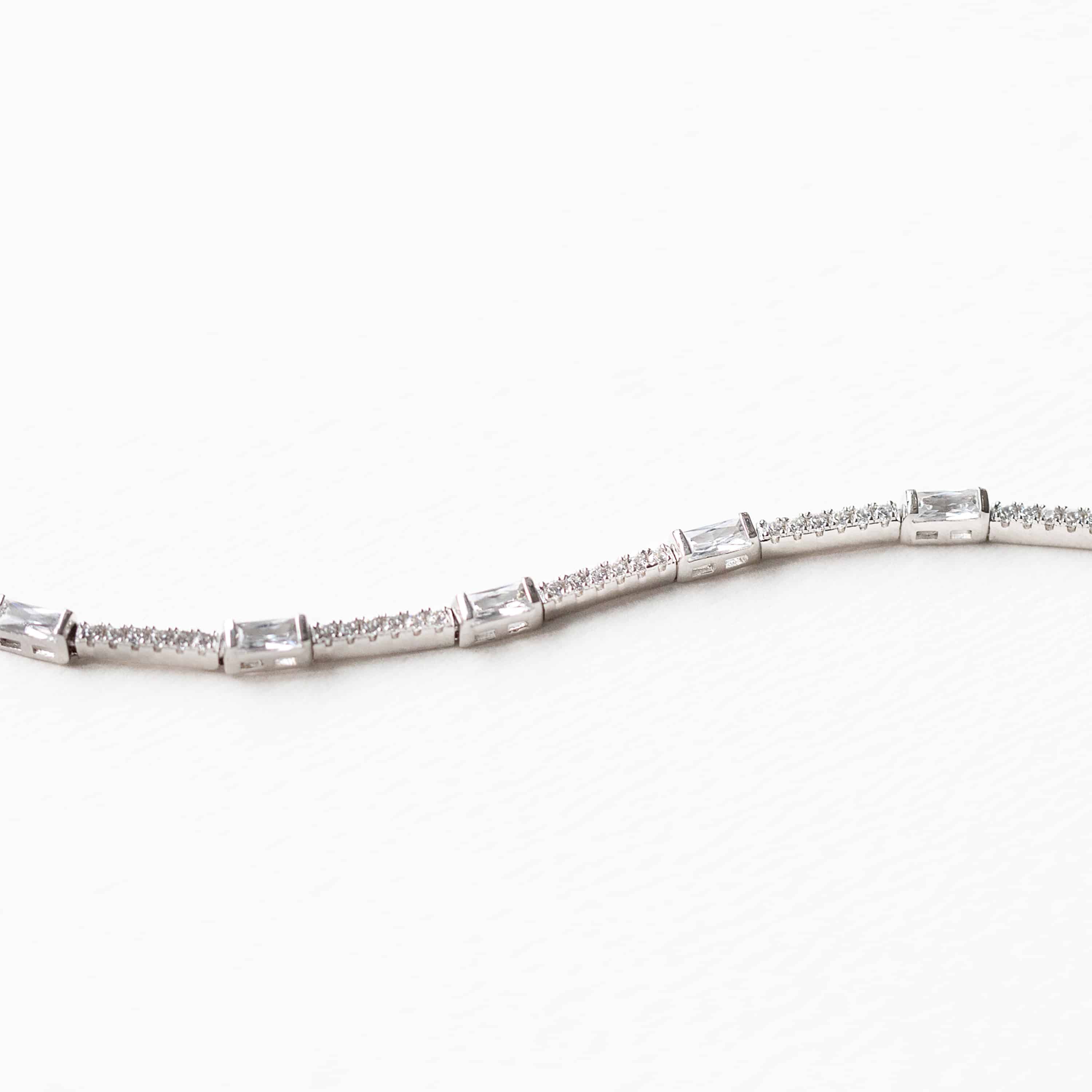 Bracelet tennis serti de cristaux CZ* taille brillant et taille baguette, en argent 925/1000e (métal précieux).