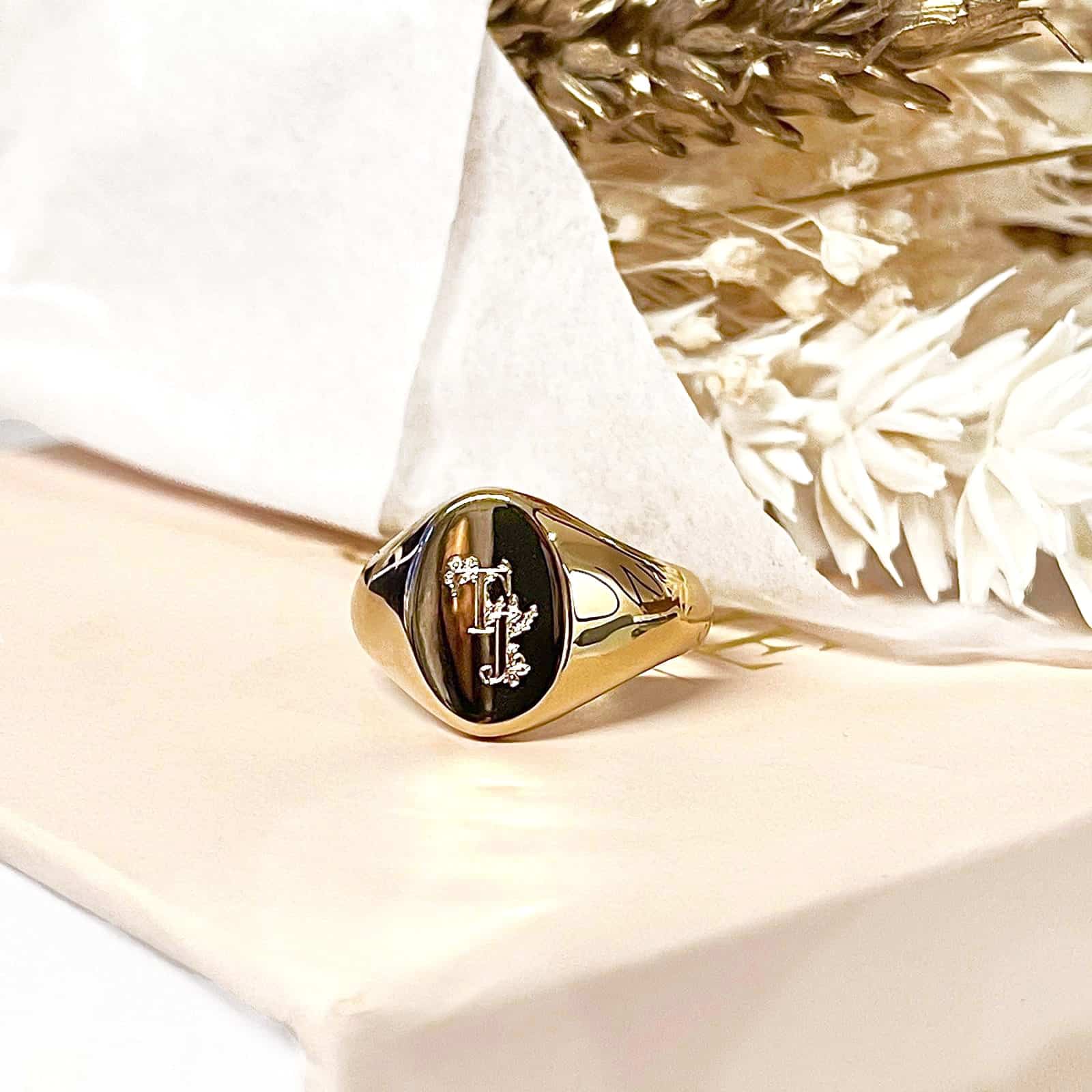 Chevalière ovale pour homme en plaqué or 18 carats, 3 microns.
