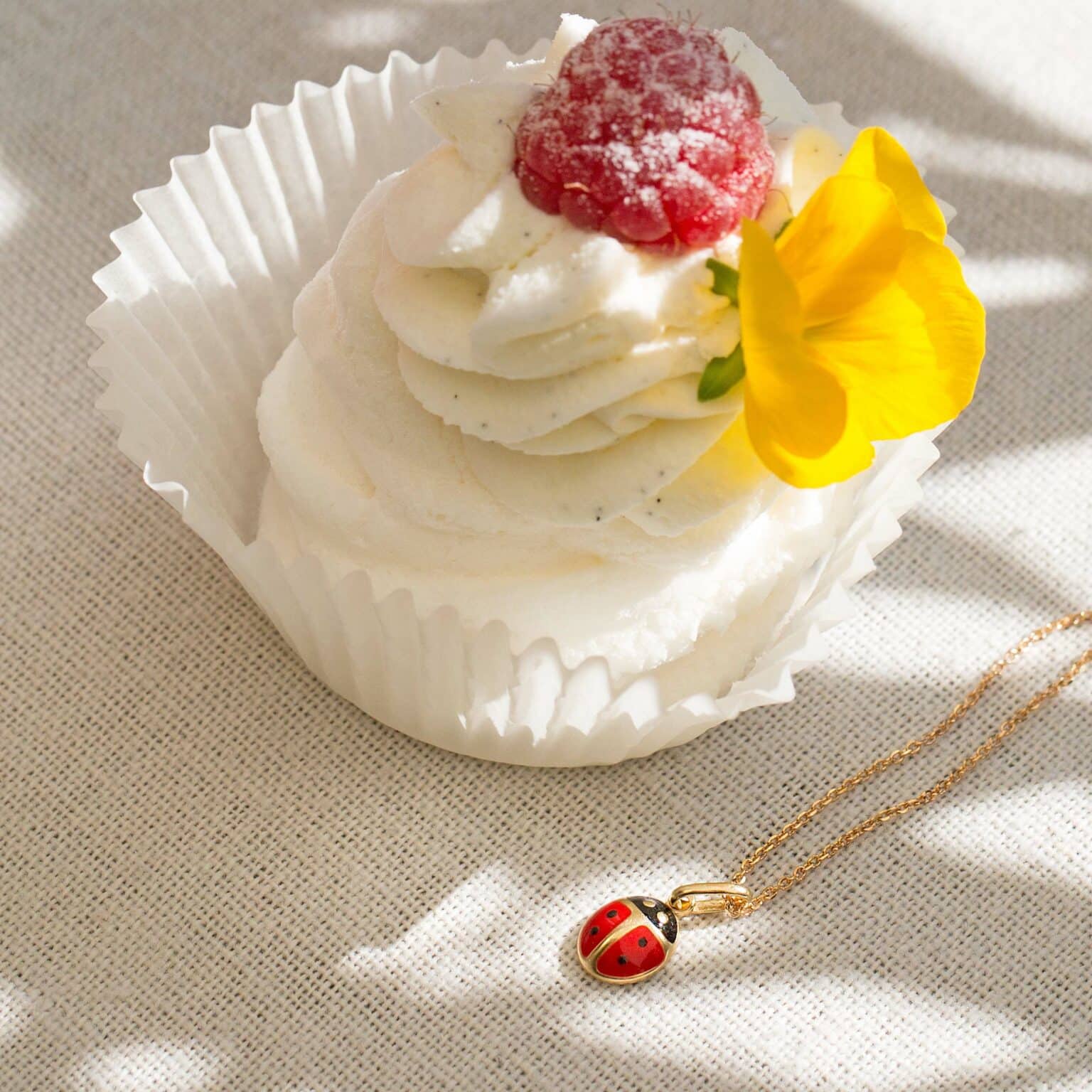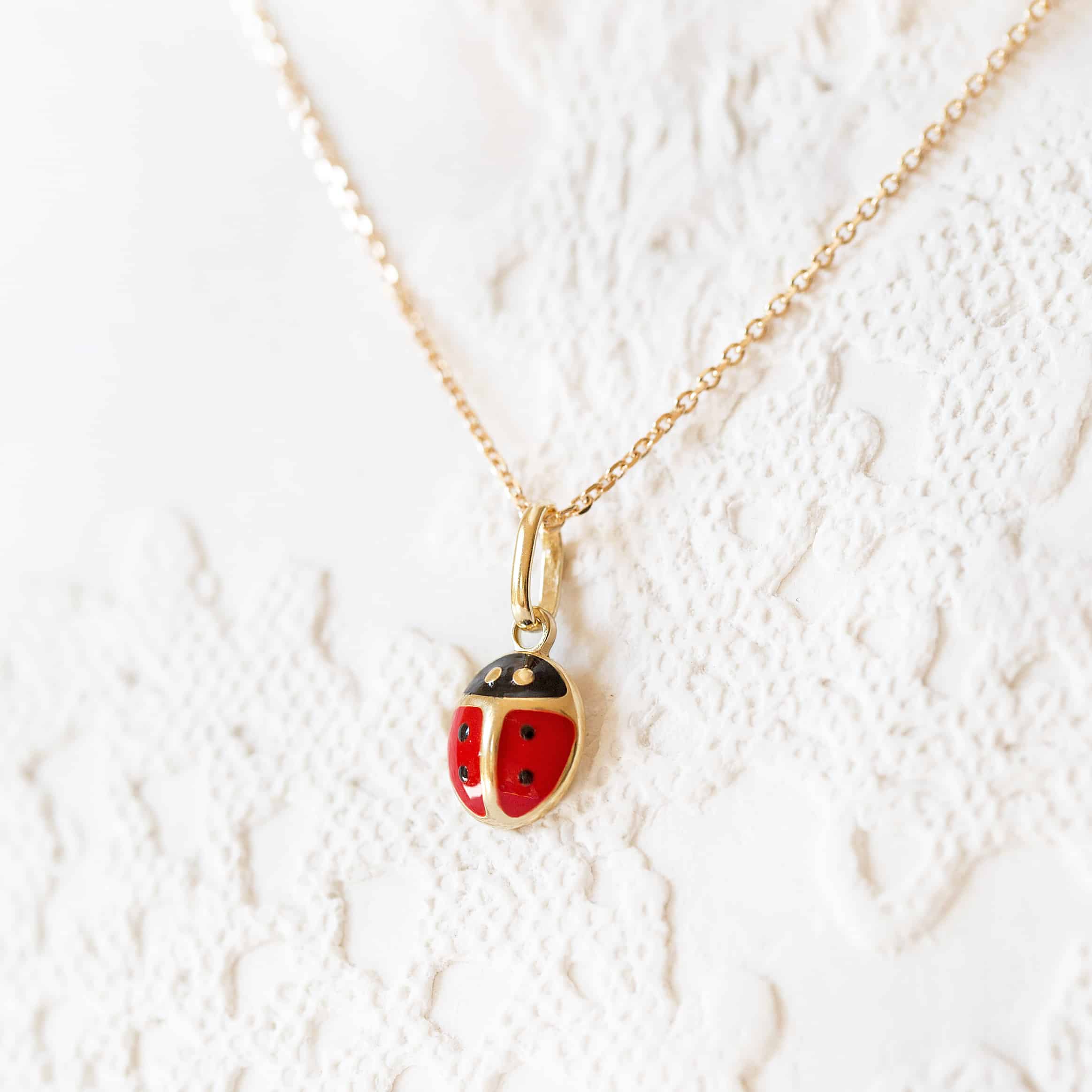 Pendentif coccinelle en émail, plaqué or 18 carats.