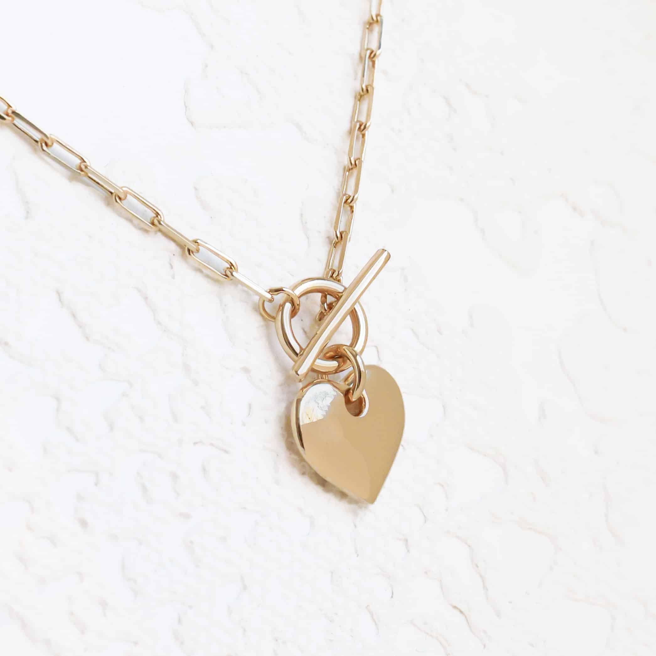 Collier coeur à maille cheval en plaqué or 18 carats, 3 microns.
