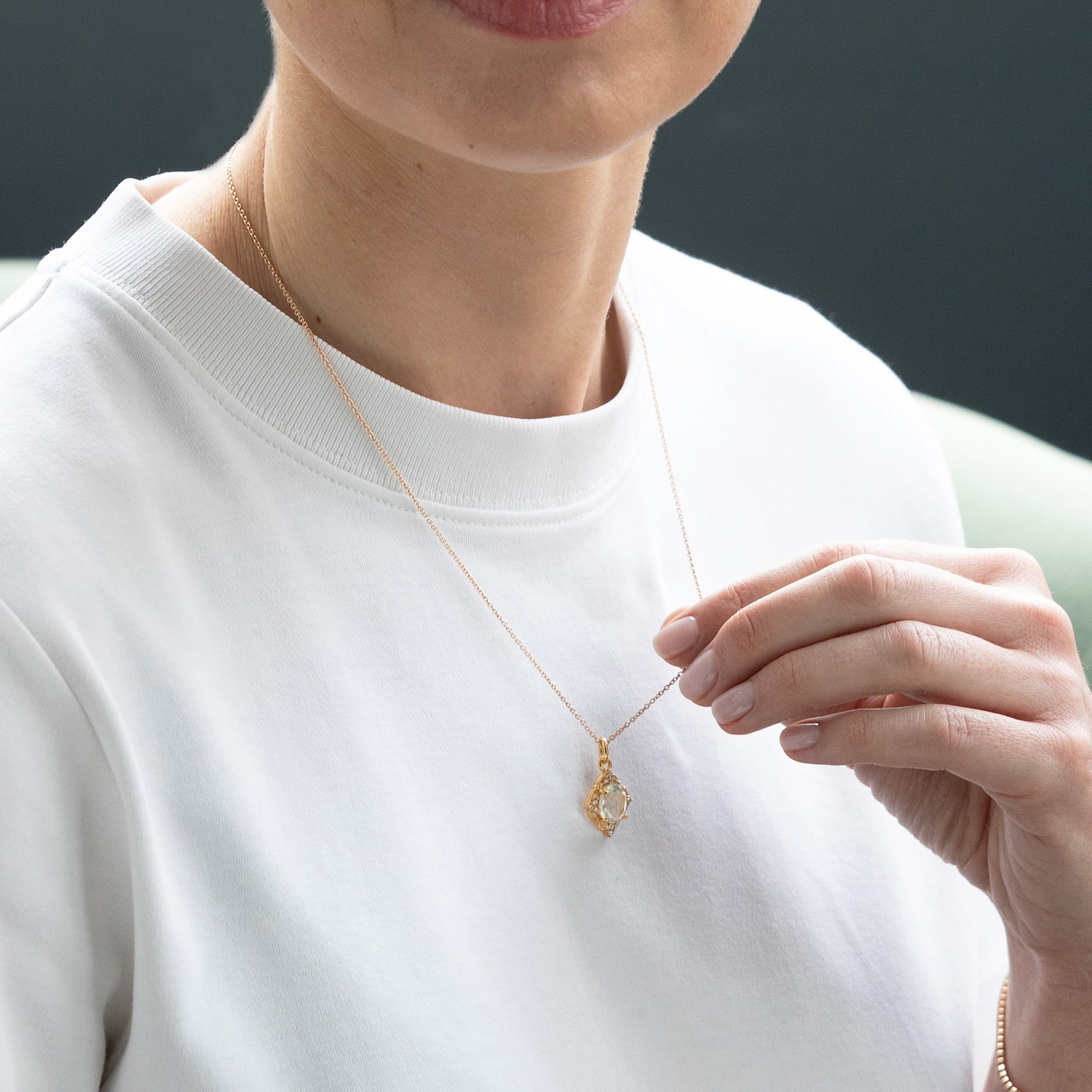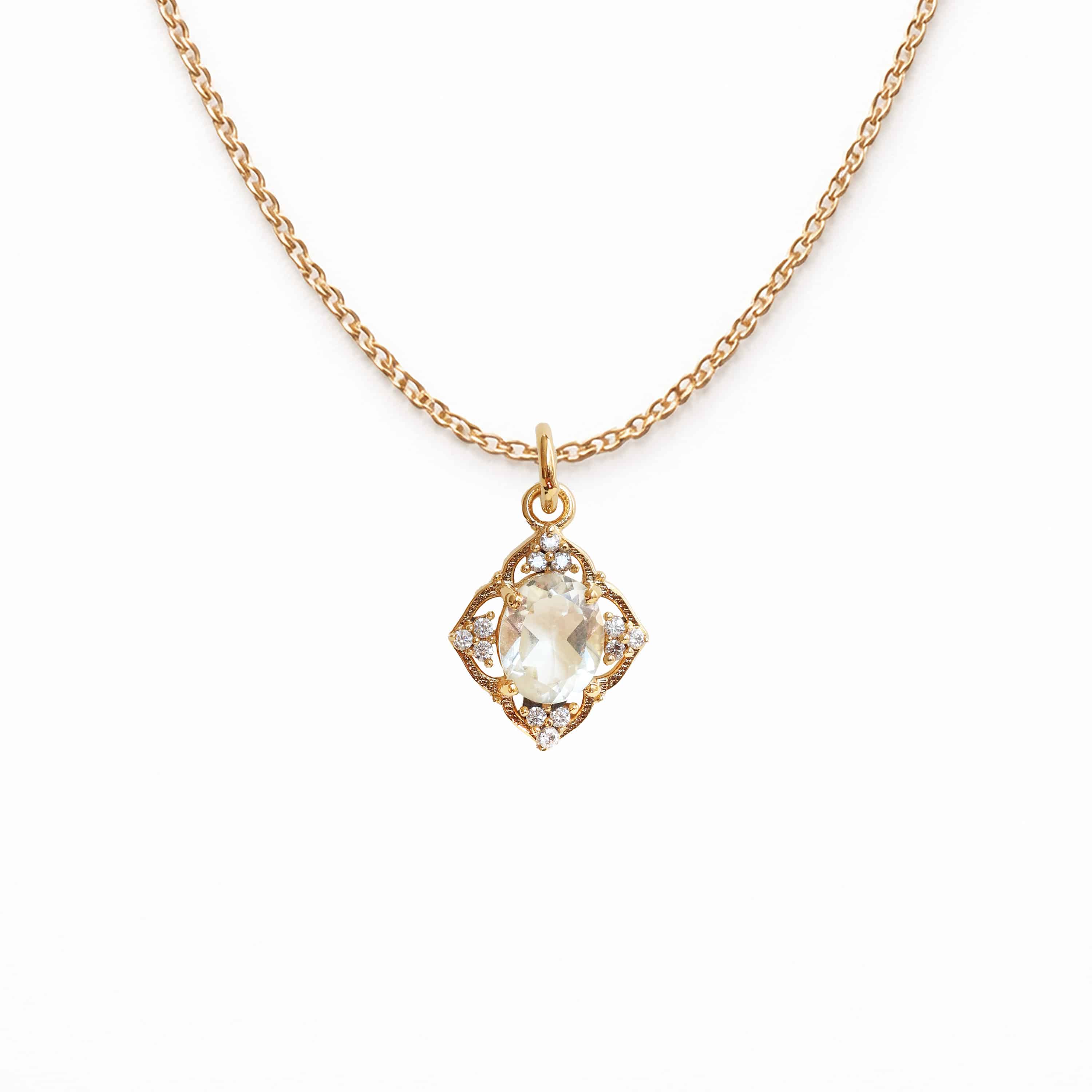 Collier à pendentif serti d'une améthyste Aqua pastel véritable taille ovale et de cristaux CZ* taille brillant. Ce bijou est en plaqué or 18 carats, 3 microns.