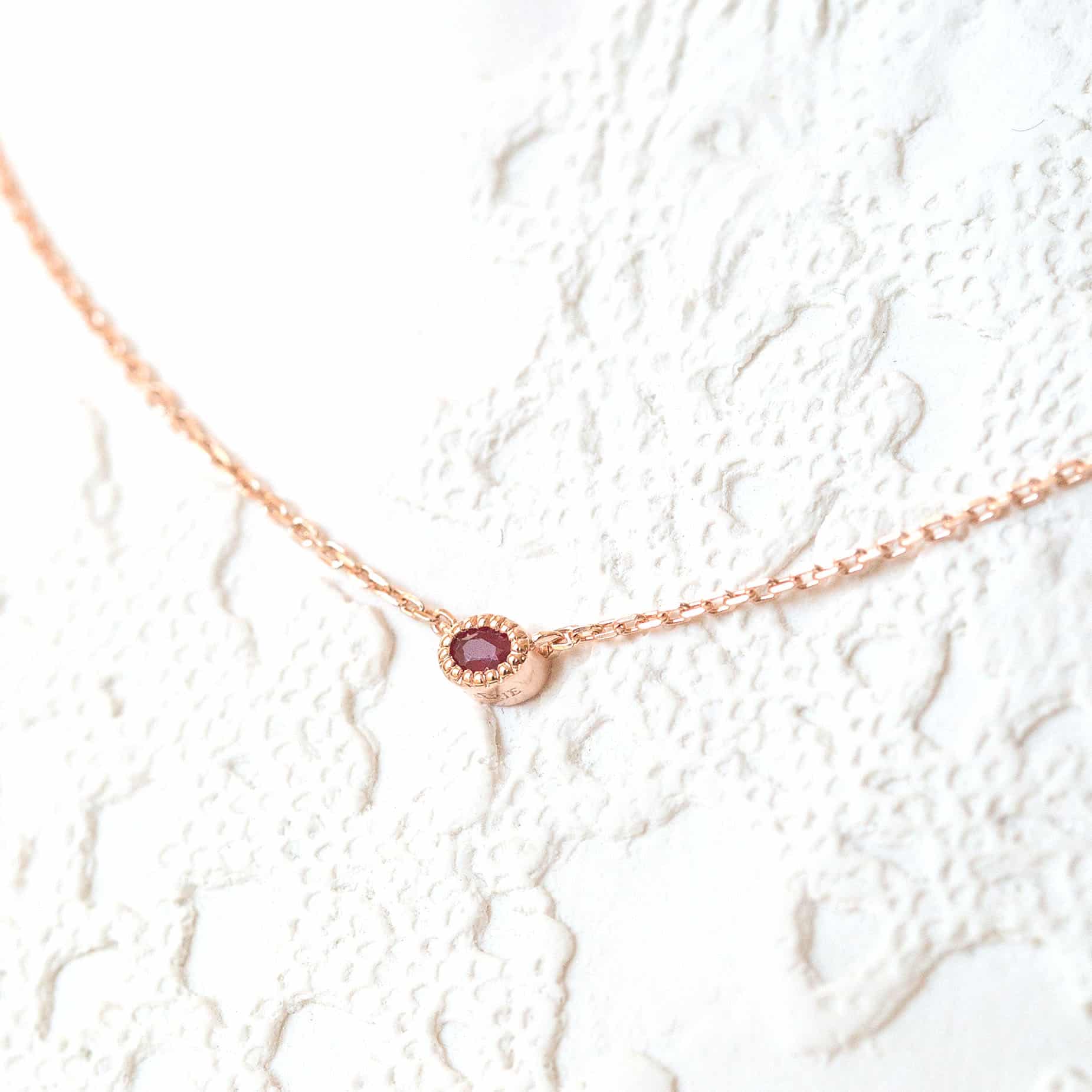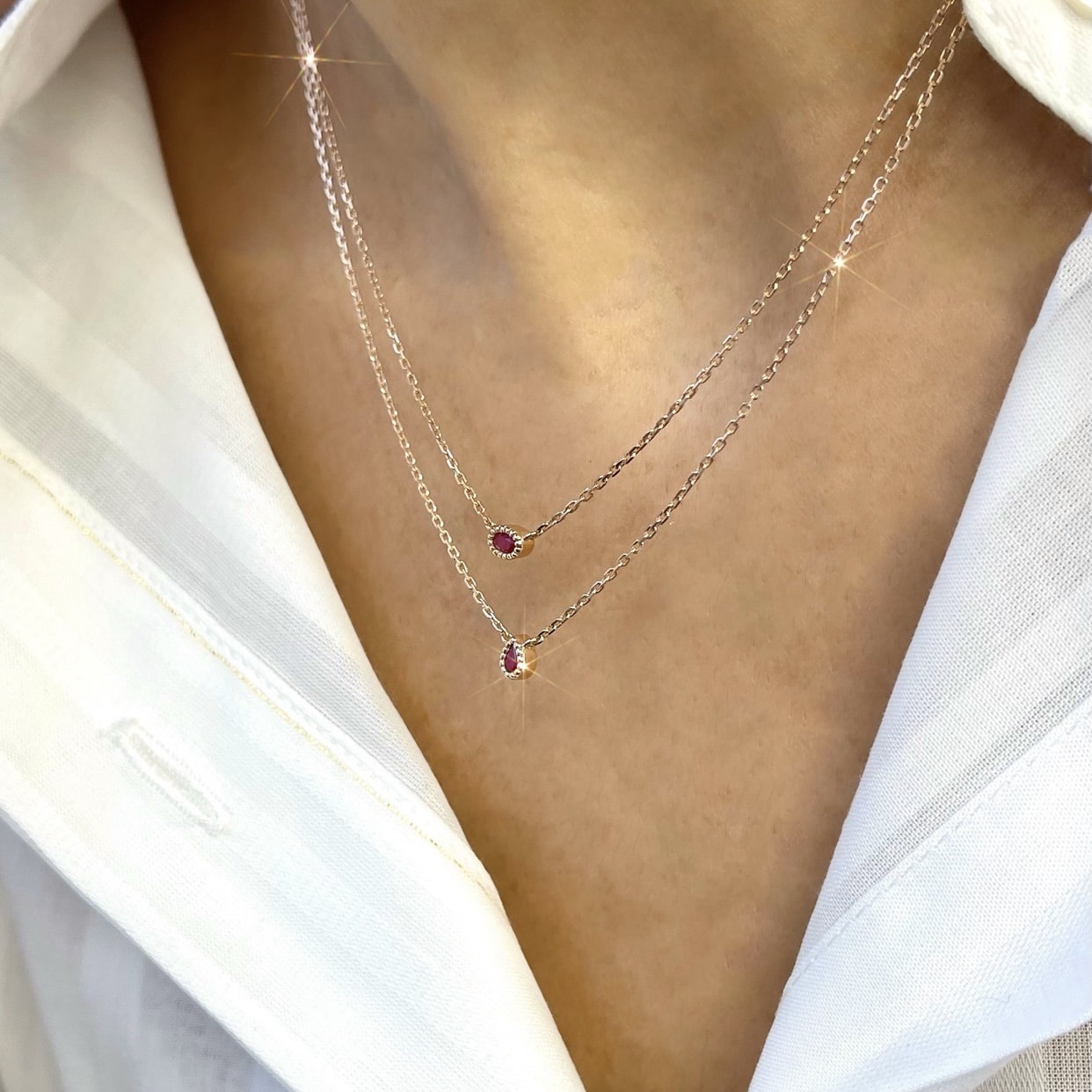 Collier serti d’un rubis véritable et certifié, taille ovale, orné d'un décor perlé.