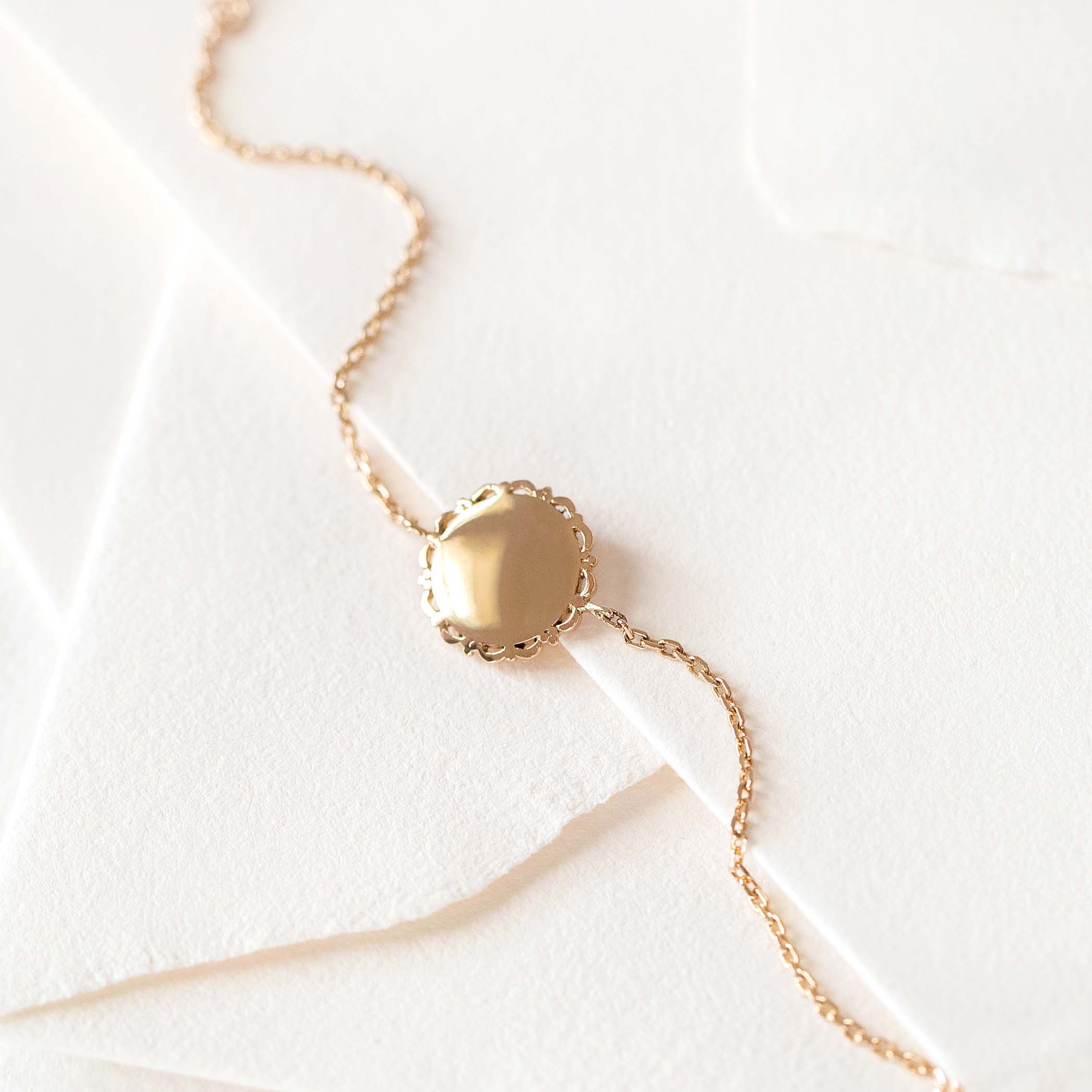 Bracelet orné d'une médaille ronde ajourée à graver en plaqué or 18 carats, 3 microns.