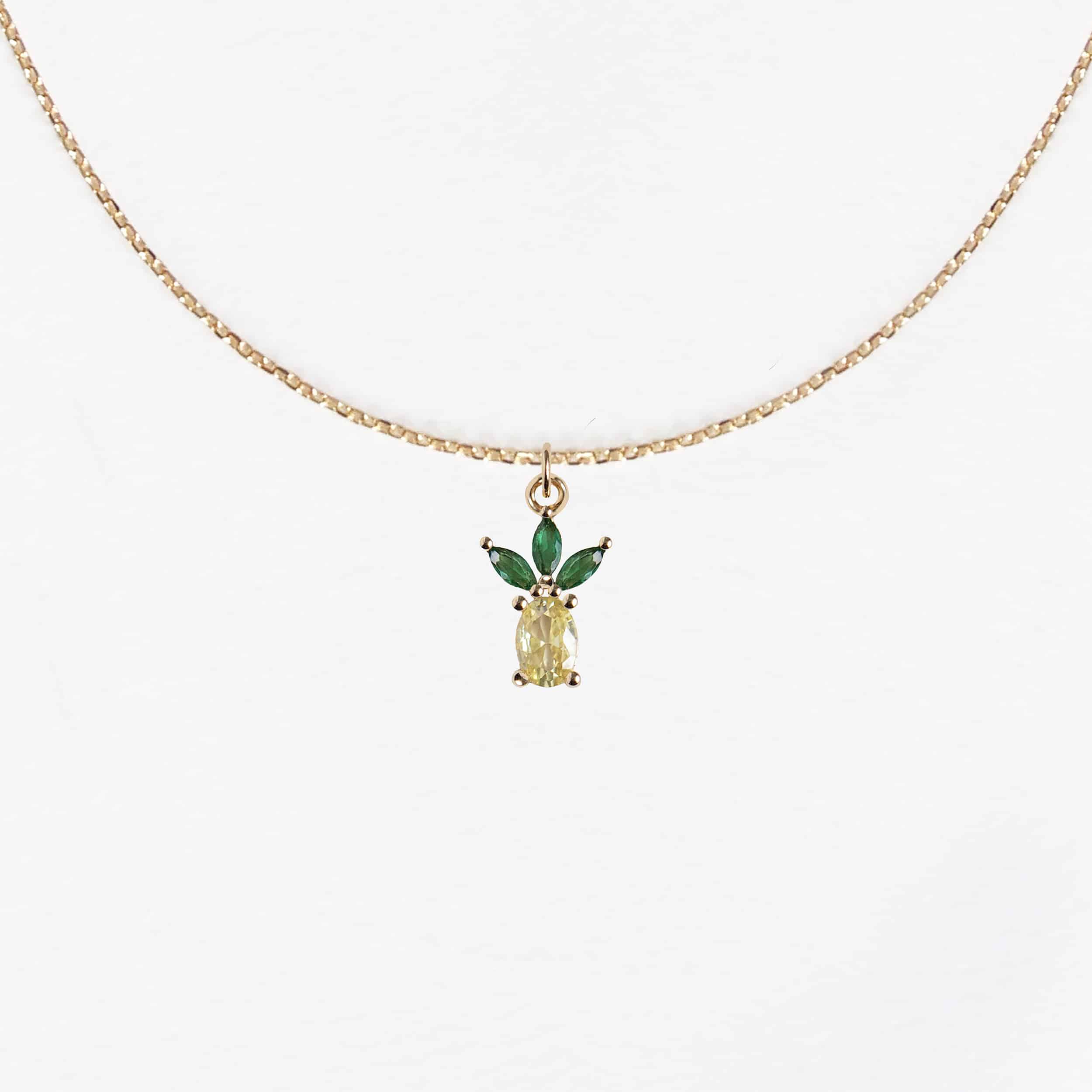 Pendentif ananas serti de cristaux CZ* verts et jaunes taille marquise et ovale.