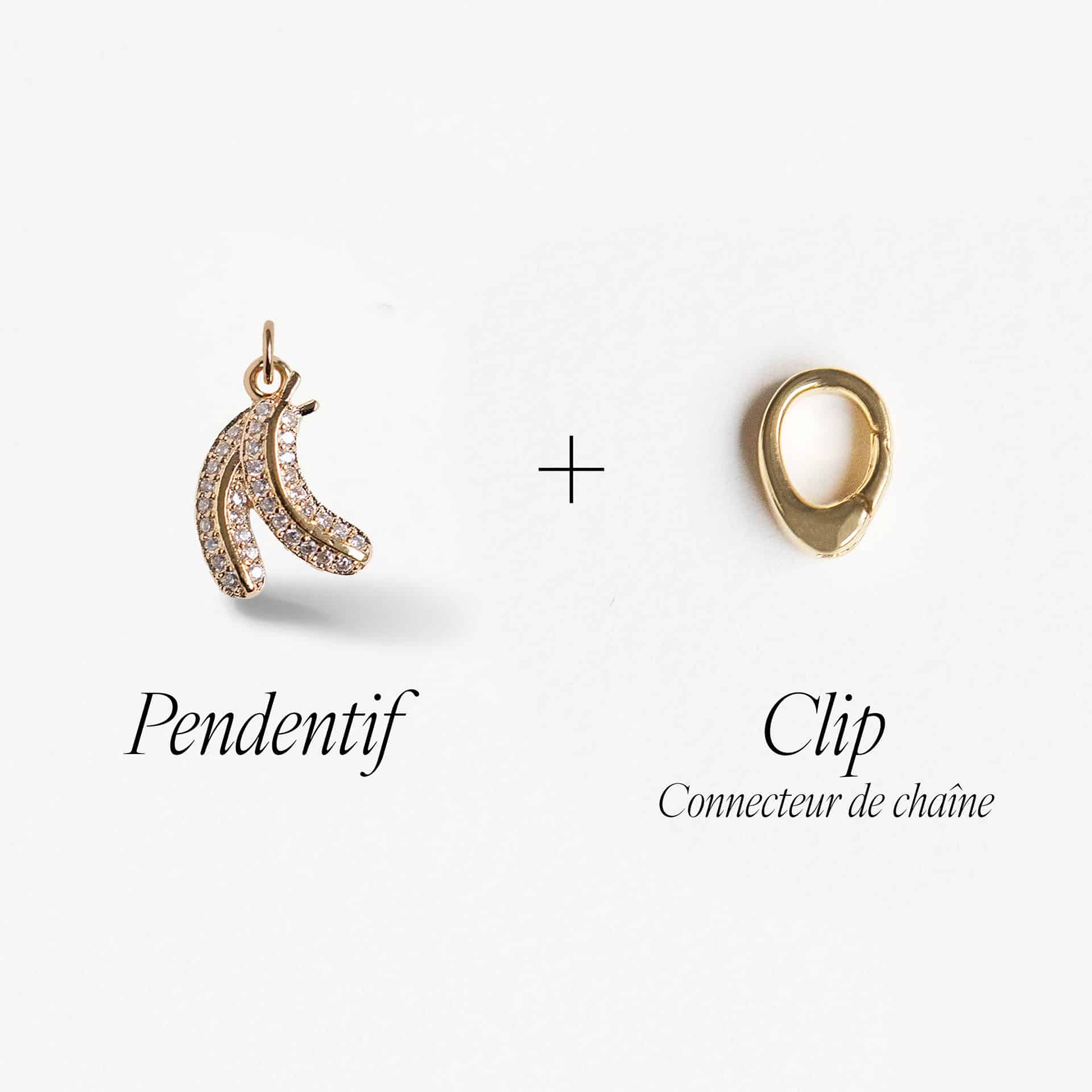Le pendentif, les chaînes et le clip connecteur sont en plaqué or, 3 microns.