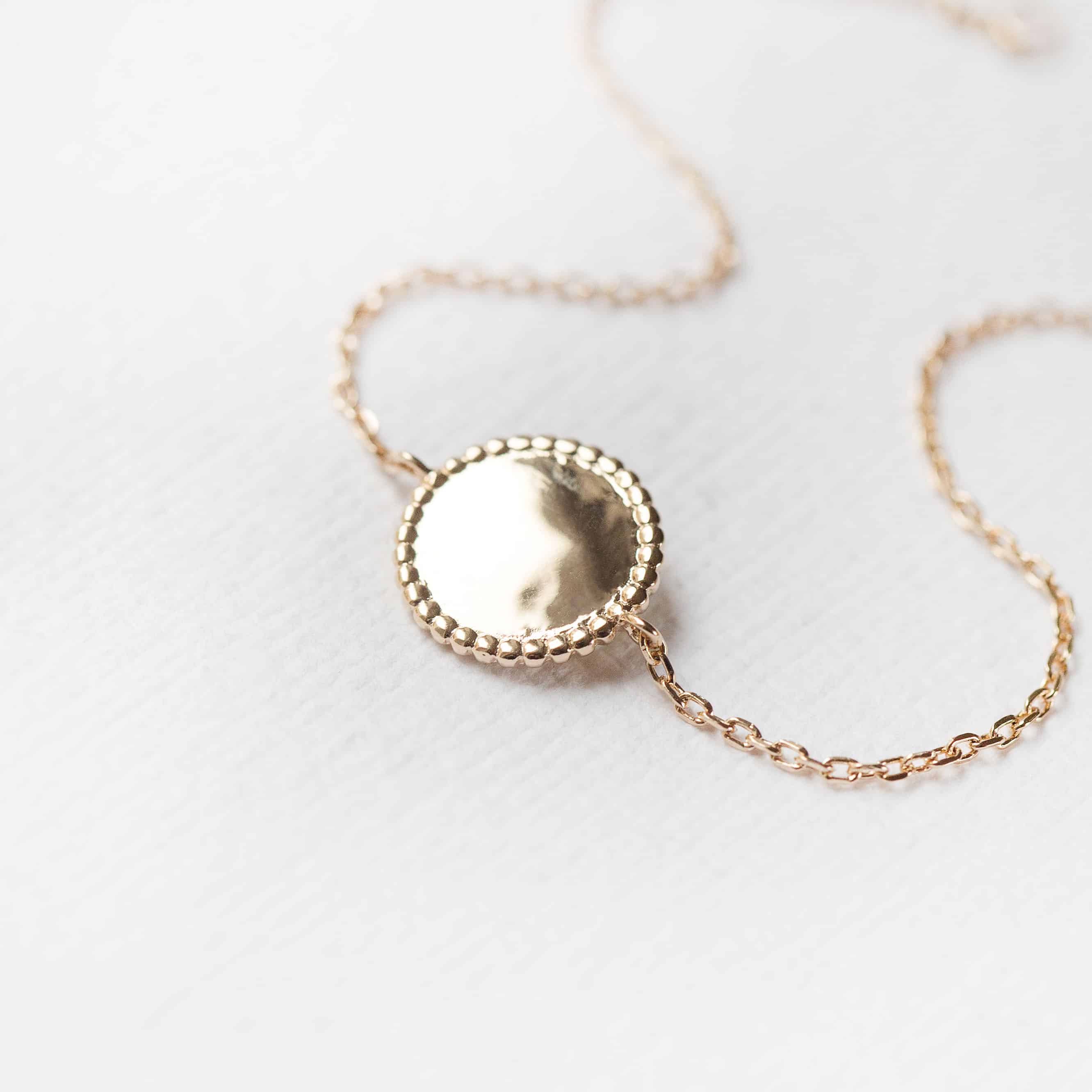 Bracelet orné d'une médaille ronde perlée à graver en plaqué or 18 carats, 3 microns.
