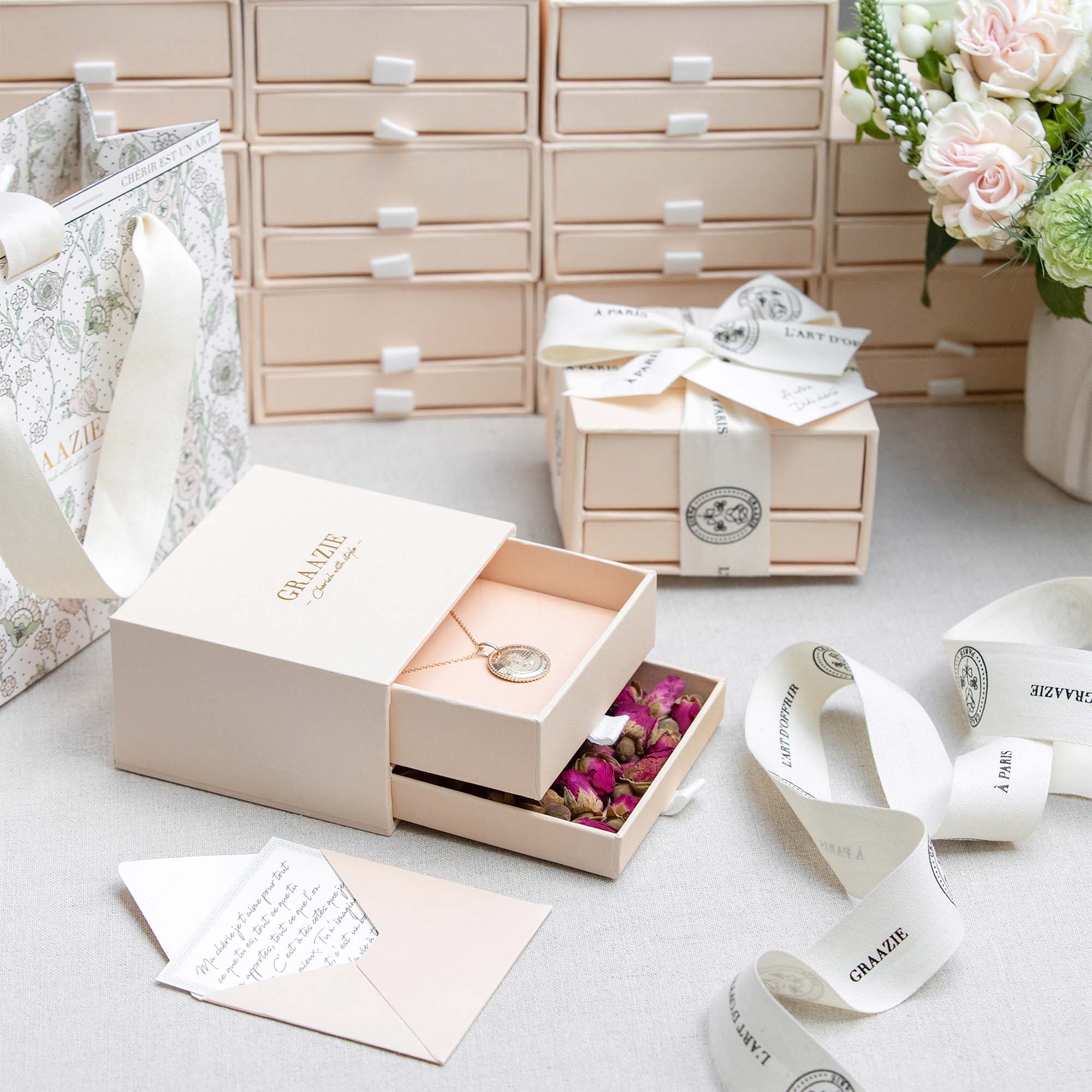Chaque écrin Graazie se compose de 2 petits tiroirs accueillant :